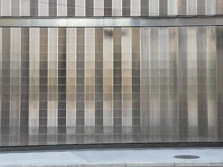 Verticale è una città disegnata senza immagine. Solo ritmo. Solo ripetizione. Lamelle metalliche salgono in linee disciplinate, catturano la luce, rilasciano ombra, tengono un battito costante sulla facciata. Questa è New York in uno dei suoi registri più silenziosi — scala senza spettacolo, struttura senza dichiarazione. Un edificio che non recita la propria identità, ma lascia parlare la proporzione. Quello che a prima vista sembra monocromo rivela una gamma soffusa di acciaio, grigio, argento polveroso e riflessi azzurri. Un muro che si comporta come architettura distillata in respiro e misura. Nulla aggiunto. Nulla tolto. Trovato appena a sud del One World Trade Center, dove la città espira in cielo e acciaio.